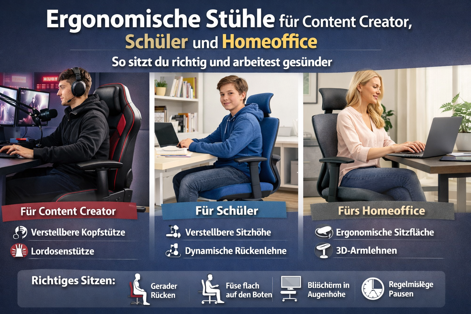 Ergonomische Stühle für Content Creator, Schüler und Homeoffice: So sitzt du richtig und arbeitest gesünder